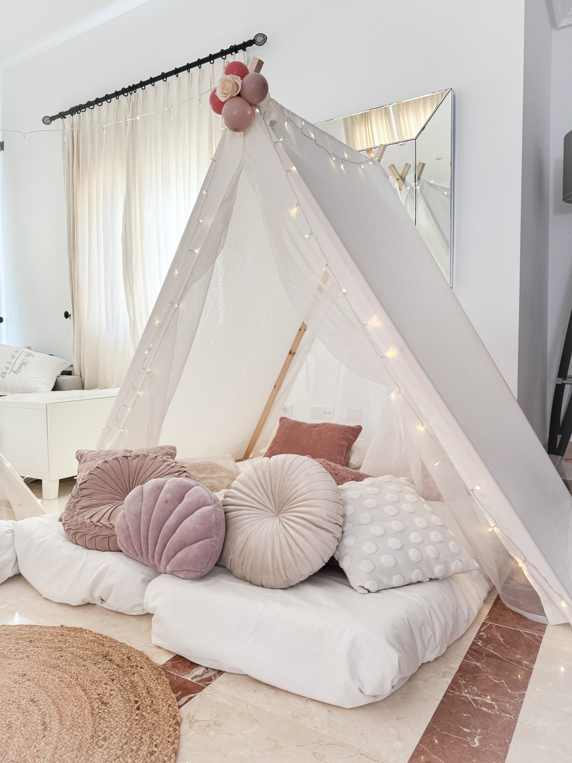 Zona infantil en bodas: Soft play, mesas, juegos y zona teepees cuando caiga la noche.