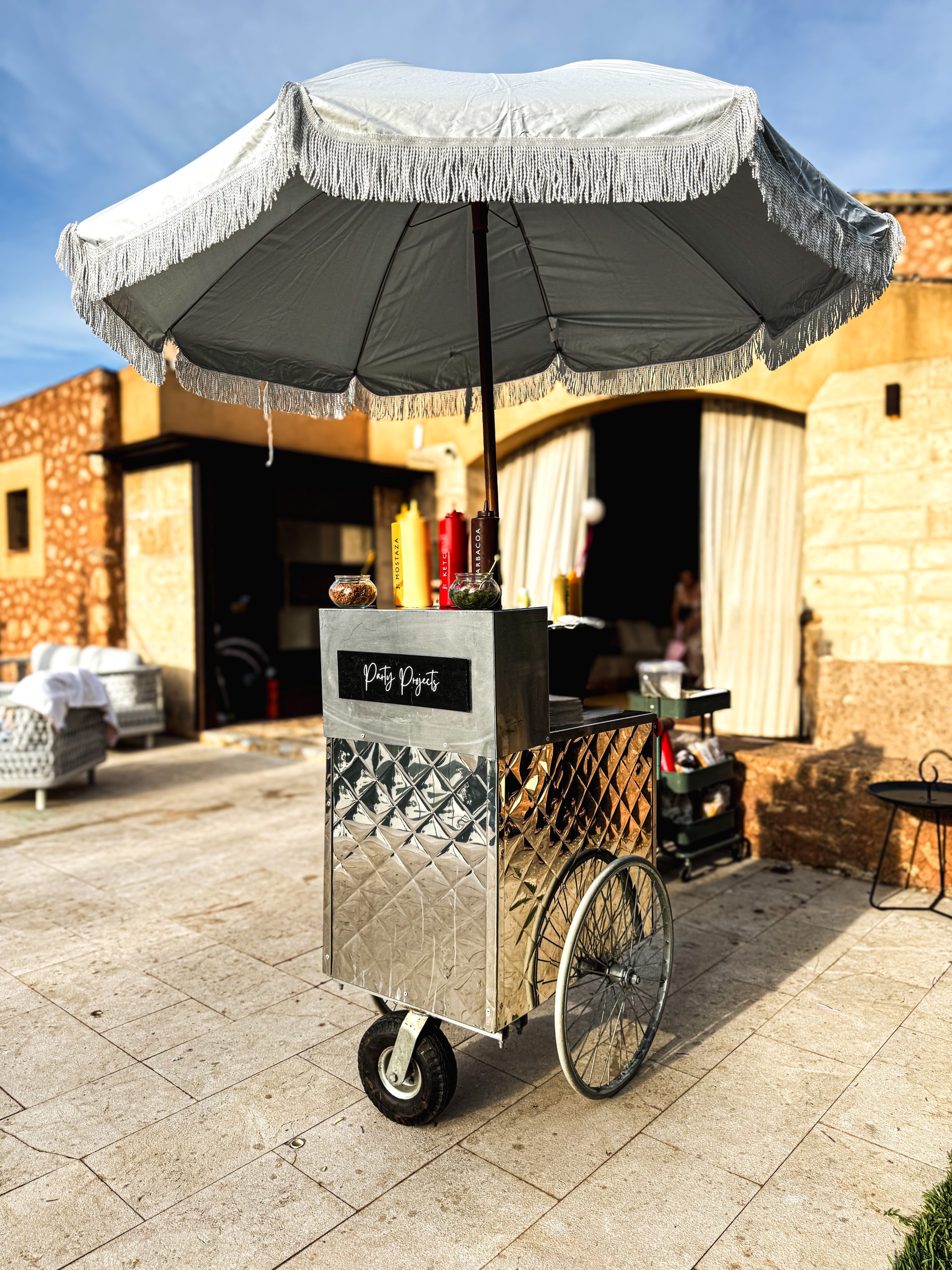 Carritos: Perritos calientes, palomitas, helados, algodón de azúcar, chucherías, mini pancakes, granizados, estación de bebidas.